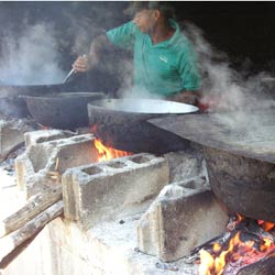 Author Ann Vanderhoof drinking coconut water | Cassia bark is rolled and pressed by hand to form cinnamon sticks | Cooking oregano infused goat |