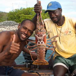 Fresh lobster for dinner | Nutmeg and mace come from the same tree. | A seamoss farmer with a jug of seamoss drink |